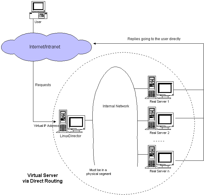继续上一篇文章是直接写的TUN模式,现在简单的试试DR模式,其实 DR模式的配置和TUN模式的配置基本类似的。主要就是把keepalived里面的TUN改成DR就行,然后RS上绑定VIP的脚本稍微修改一下,直接把VIP绑定在loopback地址上。DR模式的原理示意图如下